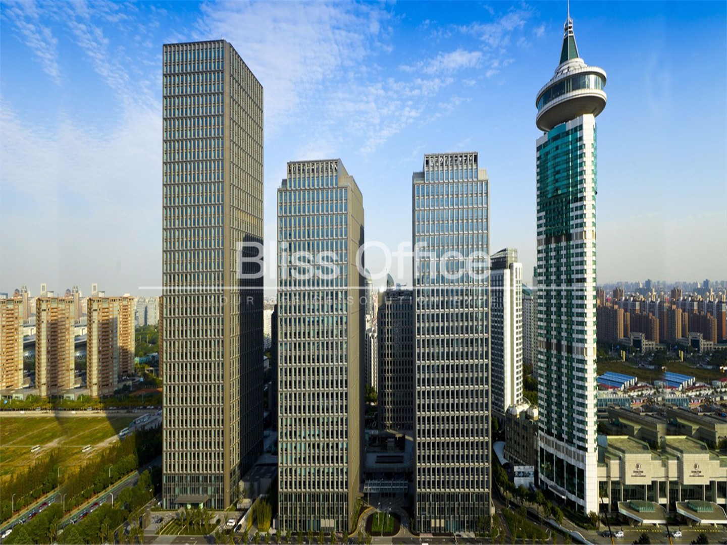 物业信息:该项目占地面积约4.65公顷,总建筑面积约45万平方米。项目由五栋甲级办公楼(商务中心)、集中绿地、配套商业设施和市政设施组成。其中办公物业面积约为30万平方米,配套商业面积约为1.8万平方米。